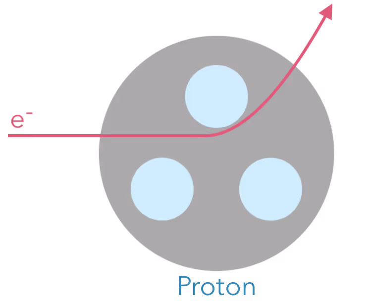 Deep inelastic scattering - Deep inelastic scattering experiments using particle accelerators involved bombarding electrons into protons and neutrons, which were previously believed to be fundamental particles. However, three points of deflection were observed, as seen in Figure 2. This implies the existence of a 3-piece substructure, parallel to the conclusion of the Geiger-Marsden experiment for the nucleus. This novel evidence challenged the long-believed elementary nature of protons and neutrons, substantiating claims for the existence of quarks. These theories were subsequently validated; clarifying the 2 up + 1 down and 1 up + 2 down quark substructure for protons and neutrons, respectively.